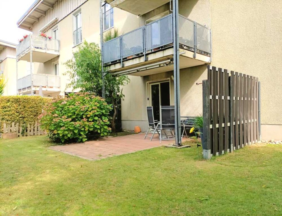 Diese attraktive Erdgeschosswohnung zeichnet sich durch eine besondere Bauweise aus. Die breiteren Türen und Durchgänge sowie in niedriger Höhe angelegten Lichtschalter und Griffe sind auch für Rollstuhlfahrer geeignet. Das Tageslichtbad ist mit einer Eckbadewanne ausgestattet und kann in eine begehbare Dusche umgebaut werden. Die Wohnung teilt sich auf in ein großes Wohnzimmer mit Zugang zur eigenen Terrasse, zwei Schlafzimmer, ein Arbeitszimmer sowie eine Küche. Umgeben von viel Grün haben Sie bei dieser Erdgeschosswohnung den großen Vorteil zusätzlich zur Terrasse Ihren eigenen Garten nutzen zu können, der aufgrund seiner Größe keine Wünsche übrig lässt.