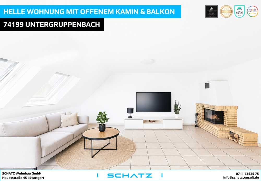Diese großzügige Etagenwohnung im 2. Obergeschoss überzeugt durch ihre durchdachte Aufteilung, den hohen Wohnkomfort und den herrlichen Blick auf die Burg Untergruppenbach. Beim Betreten der Wohnung gelangt man zunächst in einen einladenden Flur mit Garderobenbereich. Direkt links befindet sich das Gäste-WC. Rechter Hand öffnet sich das helle, großzügige Wohnzimmer mit offener Küche und einem gemütlichen, offenen Kamin, der für eine warme, wohnliche Atmosphäre sorgt. Eine große Fensterfront durchflutet den Raum mit Licht und führt direkt auf den Balkon, von dem aus man einen wunderschönen Blick auf die Burg genießen kann.