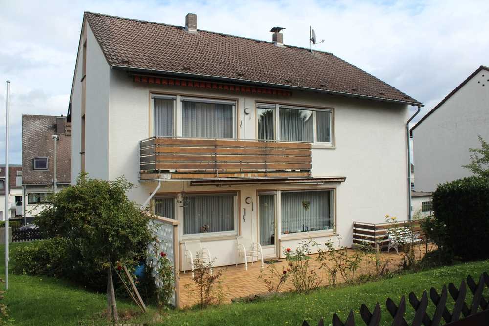 Das 630 m² große Grundstück ist mit einem neuen Jägerzaun eingefriedet. Die Doppelgarage befindet sich direkt neben dem Haus. Die Erdgeschosswohnung verfügt über eine Terrasse und hat damit direkten Zugang zum Garten. Es ist jedoch auch möglich seitlich des Hauses in den Garten zu gelangen. Auch vom Kellergeschoss führt eine Treppe von der Waschküche direkt in den Garten.