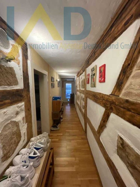 Das Wohnhaus umfasst drei Wohneinheiten mit insgesamt 255 m². Die Wohnungen sind teils saniert, mit Fachwerk, Holzböden und modernen Elementen. Der Dachboden ist ausbaufähig (Genehmigung für 400 m² Erweiterung). Das Anwesen ist gut gepflegt, mit Gasheizung, Elektroboiler und renovierter Fassade.
