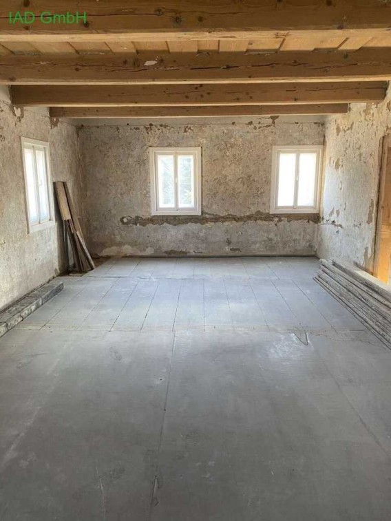 Der Kachelofen im Erdgeschoss kann erhalten bleiben, da ein entsprechender Feuerstättenbescheid vorhanden ist. Der Wasseranschluss im Keller ist neu und kürzlich abgestellt worden. Der dunkle Putz im Wohnzimmer resultiert aus der vorherigen Holzverkleidung. Ansonsten ist kein Schimmel im Haus feststellbar, es ist durchgehend trocken.