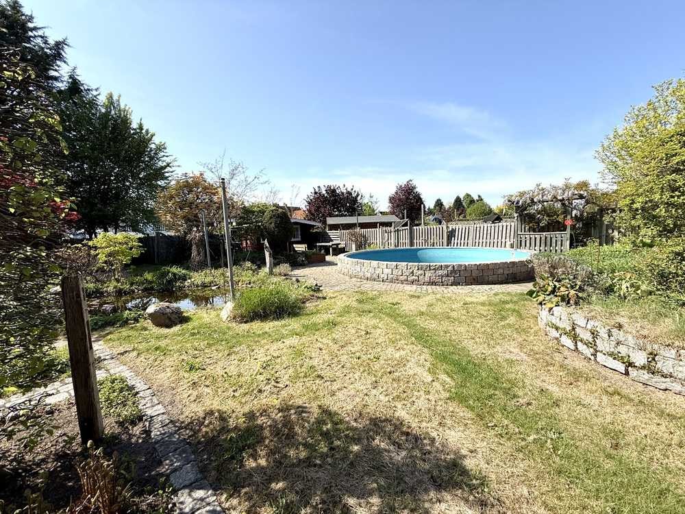 Highlight des Hauses ist der Garten, er ist ein besonderer Rückzugsort: liebevoll angelegt, grün umrahmt und mit viel Platz zum Entspannen und Gärtnern. Ob auf der sonnigen Terrasse, beim Blick über die Teichanlage oder beim Eintauchen in den beheizbaren Pool – hier findet jeder sein Lieblingsplätzchen. Ein Gewächshaus, ein Gartenhäuschen und ein Brunnen für die Gartenbewässerung runden den Garten ab.