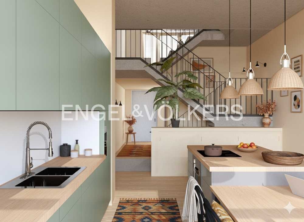 Die Reihenhäuser sind jeweils mit einer Terrasse im Erdgeschoss mit einer Süd-Westausrichtung sowie eine vierseitig umschlossene nach oben geöffnete Dachterrasse geplant. Lt. Bebauungsplan wird ein PKW-Stellplatz vor dem Haus errichtet. Zu den Eigenleistungen gehören Maler & Bodenbeläge, wenn nicht anders Vereinbart.