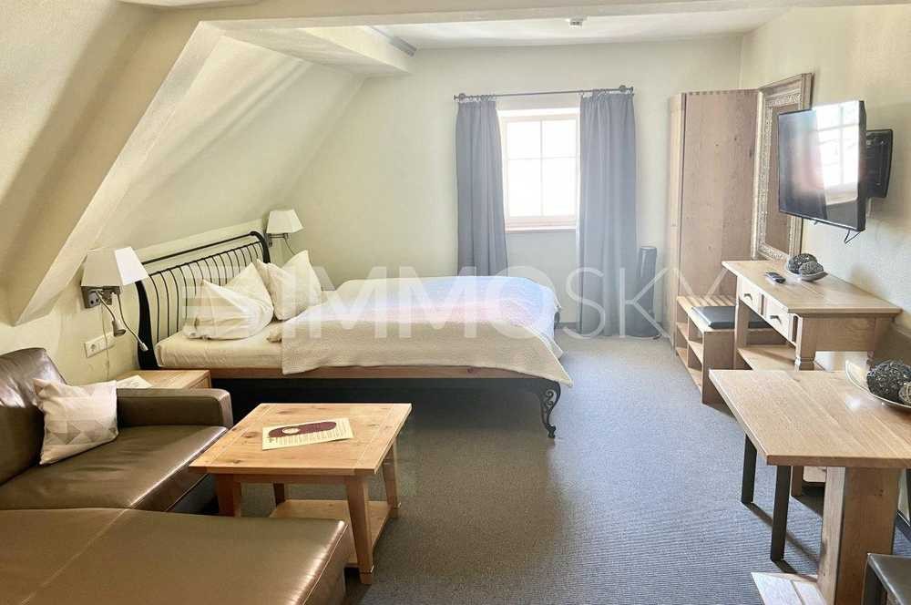 Willkommen in Ihrem neuen Zuhause im Herzen von Rothenburg ob der Tauber. In einem historischen Gebäude von 1789 gelegen, erwarten Sie zwei frisch renovierte Wohneinheiten, jede mit eigener Küche sowie Badezimmer. Hinzu kommt ein separates Gäste-Badezimmer. Ursprünglich als Hotelzimmer konzipiert, wurde die Wohnung renoviert und kann entweder unabhängig voneinander genutzt oder durch eine abschließbare Tür verbunden werden. Die frisch renovierten Küchen und Badezimmer bieten modernen Komfort, während der historische Charme des ehemaligen Hotels erhalten bleibt. Eine ideale Gelegenheit, traditionellen Charme mit moderner Flexibilität zu kombinieren.