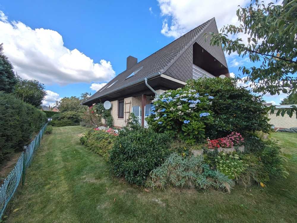 In einer ruhigen Seitenstraße gelegen, befindet sich unser Objekt im nördlichen Ortskern von Sauensiek. Die gepflasterte Auffahrt, von Blumenbeeten eingefasst, führt Sie zunächst zum überdachten Eingangsbereich, welcher aufgrund des Hochkellers über 4 Stufen erreichbar ist.