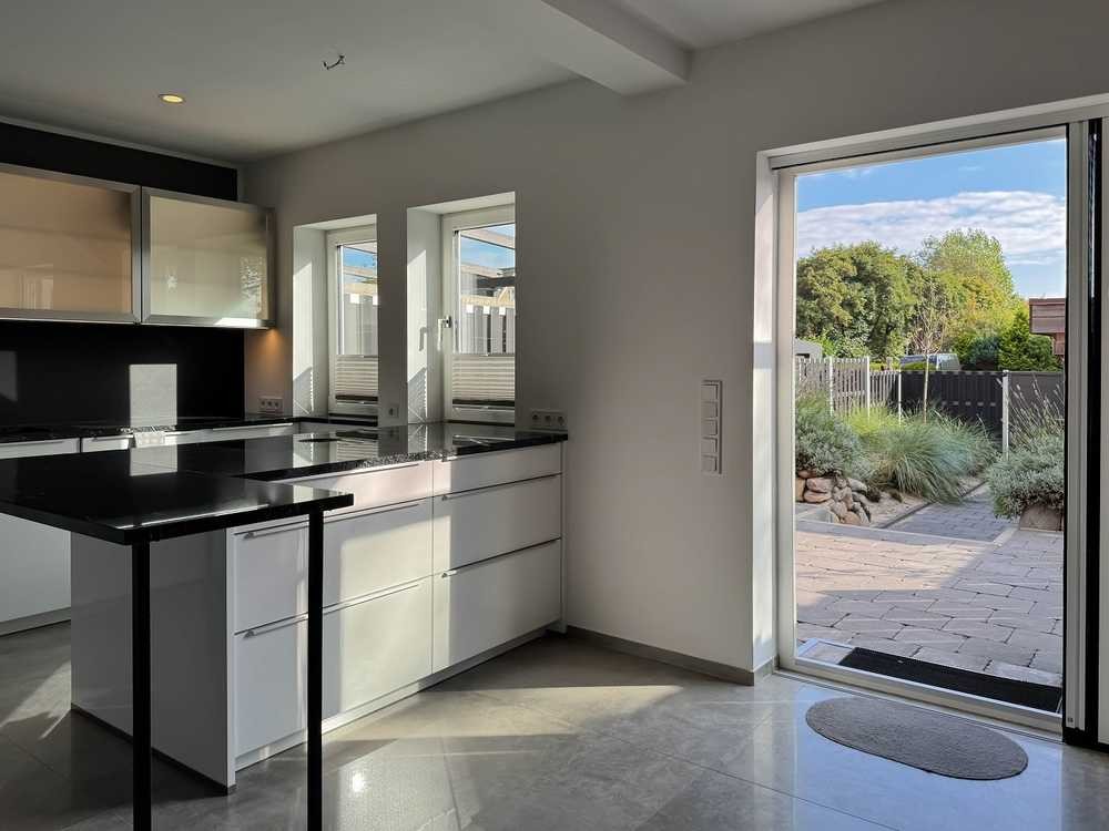 Durch die Eingangstür betreten Sie den offenen Eingangsbereich und anschließend das große Wohnzimmer mit Übergang in die offene Küche. Die luxuriöse EBK bietet alles was das Herz begehrt. Eine gemütliche Essecke steht ebenso zur Verfügung und der Zugang zur östlich ausgerichteten Terrasse mit Garten. Im Garten befinden sich ein Schuppen und eine Sauna mit Außendusche. Zurück zum Eingangsbereich. Linkerhand führt eine schicke Holztreppe ins Obergeschoss. Dort befinden sich eine separate Toilette und das große Schlafzimmer mit Dusche/ Badewanne. Aus dem Schlafzimmer führt eine breite Holztreppe in den SPB. Im Spitzboden befinden sich zahlreiche Schränke (hochwertige Tischlereinbauten). Aus dem Wohnzimmer abgehend führt eine breite Treppe ins Untergeschoss. Dort befinden sich ein weiterer großer Raum, ein großes Duschbad, ein Abstellraum und der Hauswirtschaftsraum. Zum Objekt gehört ein Stellplatz direkt vor der Haustür.