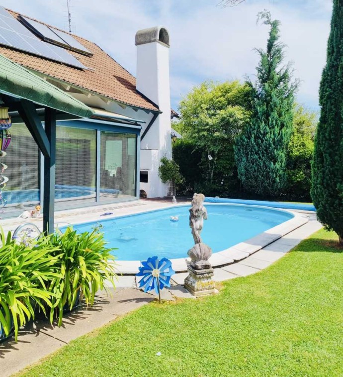 Im Untergeschoss erwartet Sie ein großzügiger Spielkeller sowie eine Sauna, zwei Lagerräume und eine neue Pelletheizung, die für eine umweltfreundliche Wärmeversorgung sorgt. Zusätzlich unterstützt eine Solar- und Photovoltaikanlage die Energieversorgung. Eine geräumige Doppelgarage bietet zusätzlichen Platz für Fahrräder und andere Freizeitgeräte.