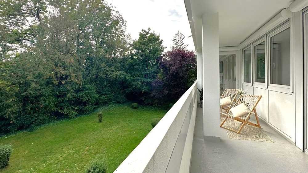 Der große in Südausrichtung gelegene Balkon (überdachte Loggia) ist vom Wohn-/Esszimmer sowie von einem Zimmer aus zugänglich und sorgt für einen tollen Flair. Die Balkontüre innerhalb des weiteren Zimmers ist mit einem Zentralanlagenschloss versehen (mit Schließanlage des Hauses verbunden) und kann bei Bedarf auch von außen geöffnet werden.