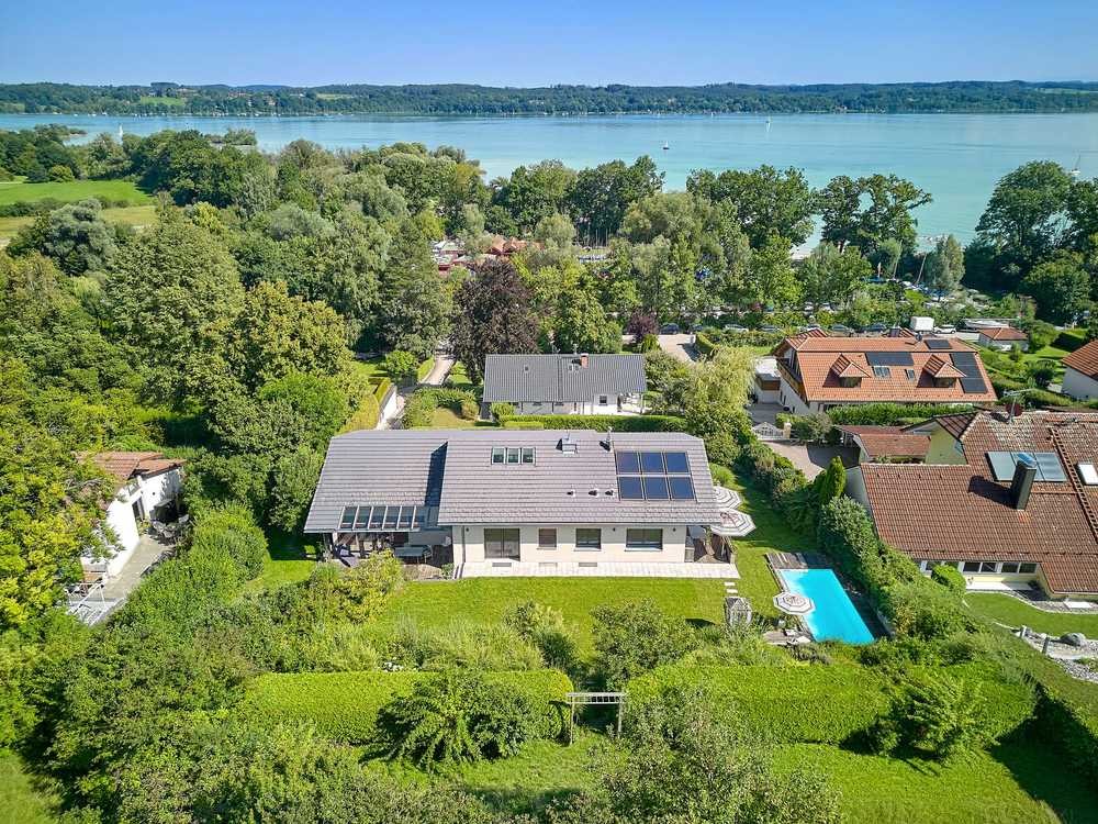 Nur wenige Gehminuten vom Ufer des Ammersees entfernt, präsentiert sich dieses ausgesprochen großzügige Einfamilienhaus in leichter Hanglage – so eröffnen sich traumhaft weite Panoramablicke über den See hinweg bis zum gegenüberliegenden Kloster Andechs. Neben atemberaubender Lichtfülle und Großzügigkeit prägt eine geschmackvolle, komfortable Ausstattung das Wohnen.