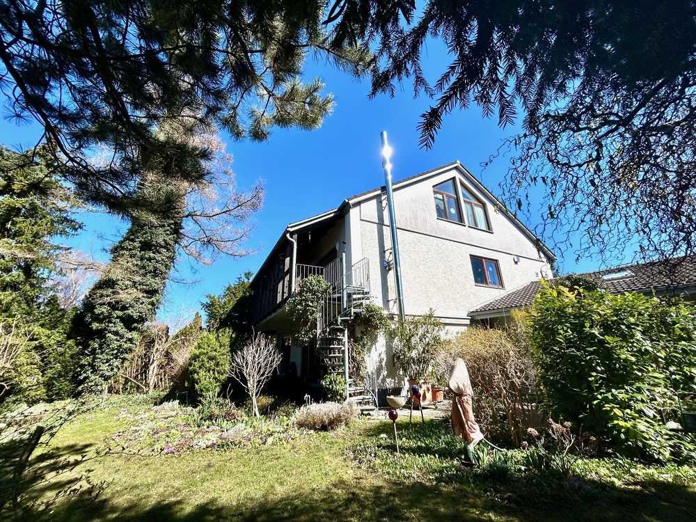 Wieder zurück im Haus gehen Sie nun die Treppenstufen hoch ins Obergeschoss: Sie betreten die Diele und finden das folgende Raumprogramm vor: Gäste-WC, ein Zimmer, Küche, Lounge und einen schönen großen Essbereich. Ein paar Schritte weiter, kommen Sie zum Wohnzimmer und wow, welche Überraschung: Bei diesem sehr großen und bis zu den Dachbalken offenen Raum fühlt man sich in eine großzügige Villa versetzt. Unglaublich, was der Architekt da umgesetzt hat. Vom Obergeschoss haben Sie zudem noch Zugang zum Balkon und über eine Außentreppe auch zur grünen Gartenoase.
