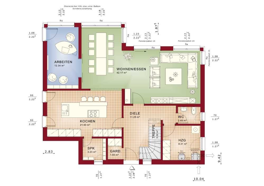 Unser durchdachter und funktionaler Grundriss, die vielfältige Architektur, die individuellen Design-Lösungen, sowie die innovative Energiespar-Technologie lassen dieses Haus garantiert zu Ihrem Traumhaus werden.