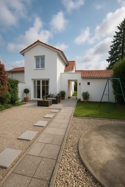 Der Garten bietet zusätzlich einen massiven Nebentrakt, der vielfältig nutzbar ist – ob als Outdoorküche, Lounge, Hobbyraum oder geschützter Rückzugsort.