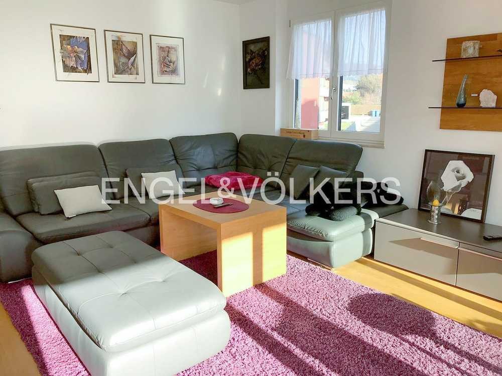 Die moderne Wohnung liegt im 1. Obergeschoss einer erst 2014 hochwertig erbauten und ab September 2015 bezogenen Wohnanlage und bietet dem neuen Besitzer 93 m² komfortabel und stilvoll gestaltete Wohnfläche. Mit gehobenem Flair überzeugt die Wohnung durch ihren offenen Grundriss und großem Wohn-Essbereich einer offenen Küche mit Fronten aus Glas und beleuchtetem Wasserhahn, sowie der bodentiefen Verglasung zum überdachten Balkon an der Süd-Westseite. Modernes Ambiente, helle und lichtdurchflutete Räume, gepaart mit wertigen Materialien waren das Ziel bei der Gestaltung der Wohnung. Die beiden hellen Zimmer, die flexibel als Schlaf- Kinder oder Arbeitszimmer genutzt werden können sowie das Badezimmer mit Bidet, Badewanne und bodengleicher Dusche, unterstreichen den großzügigen Eindruck. Zusätzlich steht ein Gäste-WC im Hauswirtschaftsraum zur Verfügung. Der verlegte Eichenparkett sowie die großen Fliesen im Badezimmer harmonieren perfekt. Zahlreiche weitere Details wie die mit 2,11 Metern überhohen Türen verdeutlichen den modernen und hochwertigen Charakter dieser Wohnung.
