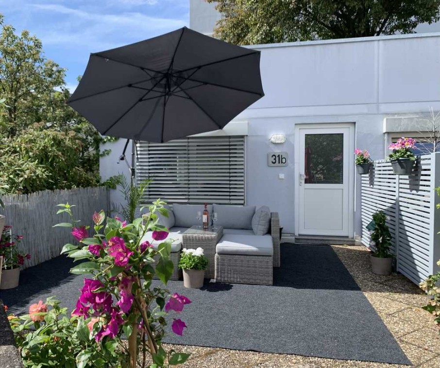 Einzigartig, da es zwar eine 2 Zimmer Wohnung ist, vom Aufbau aber eher wie eine kleine Doppelhaushälfte. Also keine Nachbarn drüber, drunter und nur auf einer Seite und somit sehr ruhig und einzigartig. Die sonnige Terrasse mit Südausrichtung lädt zum verweilen ein und komplettiert das Bild eines 54qm Reihenhauses.