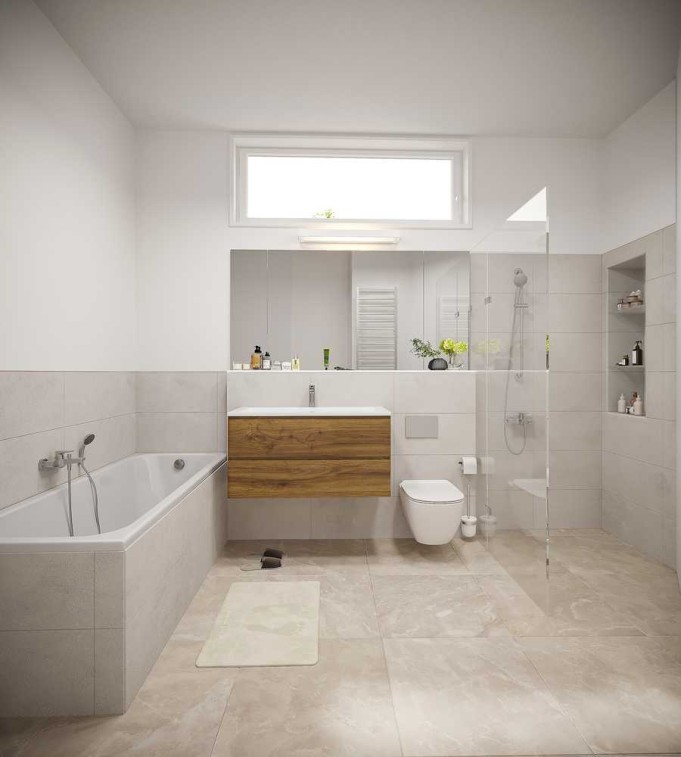 ‐ Fußbodenheizung, kontrollierte Wohnraumentlüftung, Handtuch‐Heizkörper