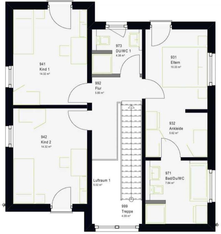 Dieses Einfamilienhaus überrascht mit zwei leicht gegeneinander versetzten Baukörpern mit doppeltem Pultdach und moderner Fassade. Auf ca. 139 m² Nettogrundfläche lässt sich individuelles Wohlfühlwohnen perfekt umsetzen. Im Erdgeschoss finden der Wohn- und Essbereich gemeinsam mit der Küche eine harmonische Verbindung. Große Fenster lassen den Blick ins Freie zu und ermöglichen einen direkt Zugang ins Freie über das Wohnzimmer. Im Obergeschoss befinden sich zwei großzügige Kinderzimmer sowie ein Elternschlafzimmer mit einer besonderen Ausführung durch die direkte Anbindung zur Ankleide und einem Wannenbad.