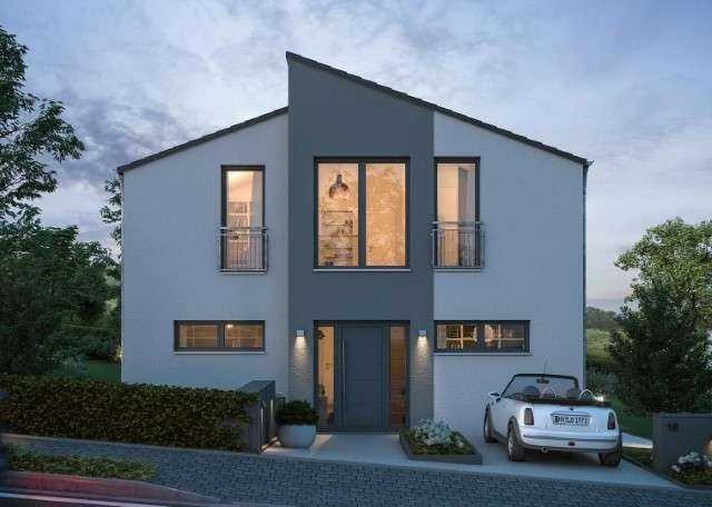 Dieses Einfamilienhaus überrascht mit zwei leicht gegeneinander versetzten Baukörpern mit doppeltem Pultdach und moderner Fassade. Auf ca. 139 m² Nettogrundfläche lässt sich individuelles Wohlfühlwohnen perfekt umsetzen. Im Erdgeschoss finden der Wohn- und Essbereich gemeinsam mit der Küche eine harmonische Verbindung. Große Fenster lassen den Blick ins Freie zu und ermöglichen einen direkt Zugang ins Freie über das Wohnzimmer. Im Obergeschoss befinden sich zwei großzügige Kinderzimmer sowie ein Elternschlafzimmer mit einer besonderen Ausführung durch die direkte Anbindung zur Ankleide und einem Wannenbad.