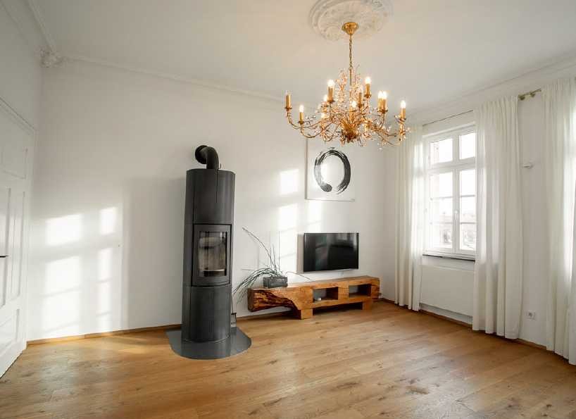 finden Holzdielenböden, hohe Stuckdecken, Sprossenfenster und andere Stilelemente genauso wie eine moderne Elektrik inklusive