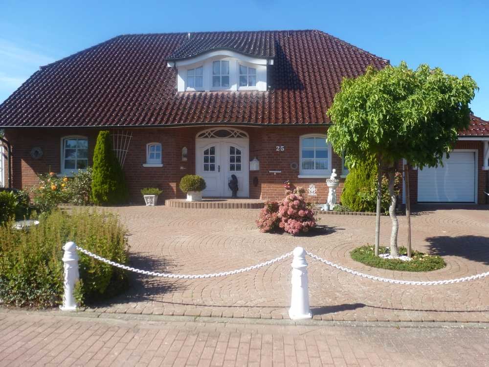 Bereits auf den ersten Blick überzeugt die Immobilie mit ihrer unverwechselbarer roten Klinkerfassade, den glasierten Dachpfannen mit formschönen Gauben und einer zum Baustil passenden Garage. Terrasse, Garten und der überdachte Eingangsbereich mit gepflastertem Vorplatz bieten Behaglichkeit und runden das Erscheinungsbild des Hauses ab. Im Inneren empfängt Sie ein heller, großzügiger Eingangsbereich mit Windfang und geschwungener Treppe. Die verglaste Doppelflügeltür verleihen dem Raum eine elegante, luftige Atmosphäre. Das gesamte Raumkonzept ist zum Teil offen gestaltet. Im Erdgeschoss bildet der ca. 56 m² große Wohn- und Essbereich das Herzstück des Hauses – mit zum Teil bodentiefen Fenstern und direktem Zugang zur überdachten Terrasse. Ein Kachelofenkamin sorgt für Gemütlichkeit. Die Küche ist durch einen praktischen Vorrats- und Verbindungsgang mit Einbauschränken direkt an die Garage angebunden – ein durchdachtes Detail für den Alltag. Ergänzt wird das Raumangebot auf dieser Ebene durch ein Schlafzimmer, ein Büro ein Gäste-WC, sowie ein helles Duschbad. Ein weiteres Highlight stellt die großzügige Wohnung im Dachgeschoss mit einer Wohnfläche von ca. 100m² dar. Der Teilkeller verfügt über einen Hauswirtschaftsraum, einen Abstellraum und den Heizungsraum mit Tanklager. Die Heizungsanlage von Brötje, wurde 2024 erneuert.