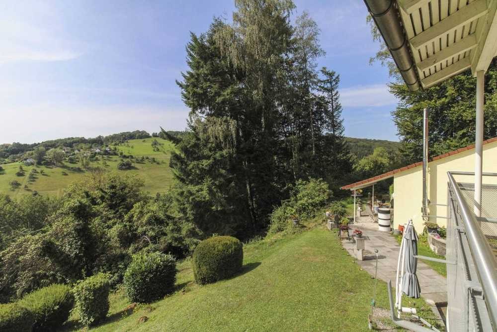 Das ca. 5.000 m² große Grundstück bietet zusätzlich zu dem Balkon reizvolle Entspannungsmöglichkeiten im Freien. Als besonderes Highlight präsentiert sich der Garten mit 2 überdachten Terrassen, einem Fischteich und unverbaubarem Ausblick. Ein Kellerraum ergänzt das Angebot. Zuletzt sind mehrere Freistellplätze und eine Garage ebenfalls Bestandteil des Objektes und vervollständigen dieses einzigartige Angebot.