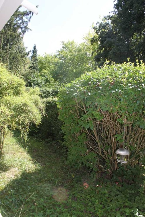 Die Terrasse ist derzeit blickdicht begrünt.