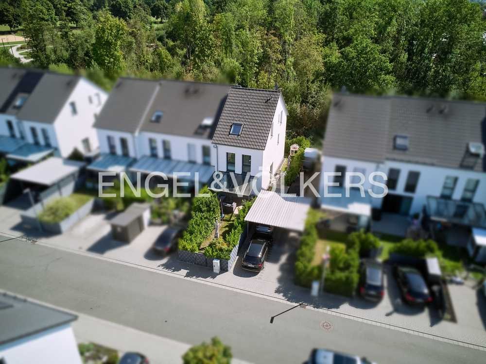 Dieses neuwertige, 2019 erbaute Reihenendhaus besticht durch moderne Architektur und hohe Energieeffizienz. Mit insgesamt fünf Zimmern auf drei Etagen bietet es eine Wohnfläche von ca. 148 m² – ideal für Familien. Das durchdacht gestaltete Erdgeschoss beginnt mit einer schlanken Diele, die ausreichend Platz für eine Garderobe und ein breiter angelegtes Gäste-WC bietet. Das Herzstück bildet der lichtdurchflutete Wohn- und Essbereich, der fließend in eine hochwertige, moderne Küche mit Kochinsel übergeht. Von hier aus gelangen Sie direkt in den urbanen Garten mit überdachter Terrasse, die zum Entspannen einlädt. Dieser sichtgeschützte Außenbereich ist ideal, um Feierabende mit Freunden zu genießen. Ein zusätzlicher Freisitz, der vom Essbereich aus zugänglich ist, lädt dazu ein, das Frühstück in der Vormittagssonne zu genießen. Der einseitig umlaufende Garten bietet neben bereits bestehender Bepflanzung ausreichend Raum für individuelle Gestaltung und beherbergt eine geräumige Gartenhütte. Im ersten Obergeschoss befinden sich zwei komfortable Schlafzimmer sowie ein voll ausgestattetes Badezimmer mit einem praktisch angeschlossenen Hauswirtschaftsraum, der ausreichend Platz für Waschmaschine, Trockner und Abstellmöglichkeiten bietet. Das zweite Ober- geschoss umfasst zwei weitere Schlafzimmer sowie einen zusätzlichen Hauswirtschaftsraum, der bereits für den Einbau eines zweiten Badezimmers vorbereitet ist. Als zusätzlicher Stauraum steht der ausgebaute Spitzboden zur Verfügung. Das Haus besticht darüber hinaus durch eine sehr hochwertige Ausstattung sowie durch moderne Sicherheitsvorkehrungen, darunter eine einbruchs- hemmende Haustür und Fenster. Im gesamten Wohnhaus sorgt eine moderne Wohnraumbelüftung mit 2-Stufen-Abluftsystem und Frischluftzufuhr für ein stets angenehmes und gesundes Raum- klima. Zum Haus gehören außerdem ein direkt angrenzender Carport-Stellplatz sowie ein weiterer Stellplatz direkt davor. Das gepflegte Wohnumfeld erleichtert den Alltag spürbar und ist besonders für Familien attraktiv. Der Außenbereich sowie Spiel- und Sportmöglichkeiten befinden sich in direkter Umgebung und sind bequem zu Fuß erreichbar.