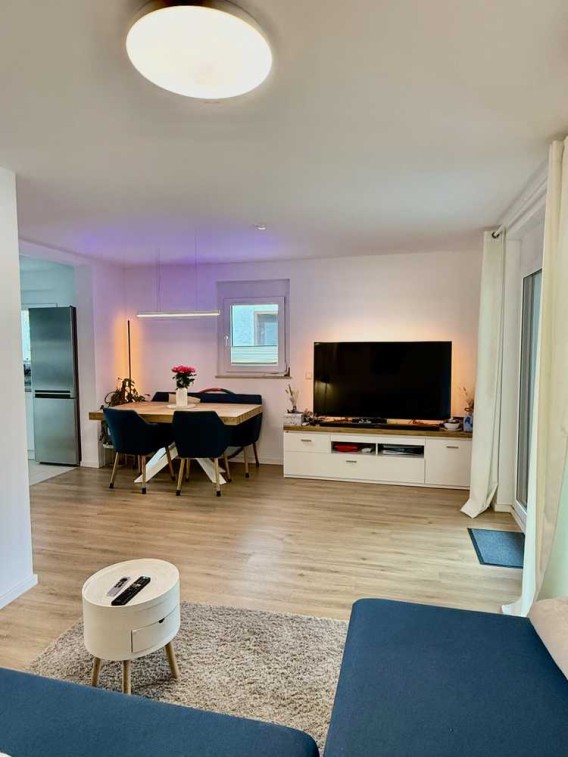 Diese moderne 3-Zimmer-Wohnung (Erstbezug 2019) überzeugt durch ihre hochwertige Ausstattung, den eigenen Garten und die zentrale Lage in Waiblingen. Der offene Wohn-/Essbereich mit Einbauküche, ein Balkon mit Abstellraum sowie ein helles Tageslichtbad mit bodentiefer Dusche und Badewanne bieten hohen Wohnkomfort. Fußbodenheizung, Klimaanlage, elektrische Rollläden, Design-Vinylboden und Netzwerkanschlüsse sorgen für ein modernes Wohngefühl. Zur Wohnung gehören ein Kellerraum, ein gemeinschaftlicher Waschraum und ein Tiefgaragenstellplatz mit Stromanschluss. Die Altstadt, der Talaue-Park sowie Einkaufsmöglichkeiten, Schulen und der Bahnhof sind in wenigen Minuten zu Fuß erreichbar.