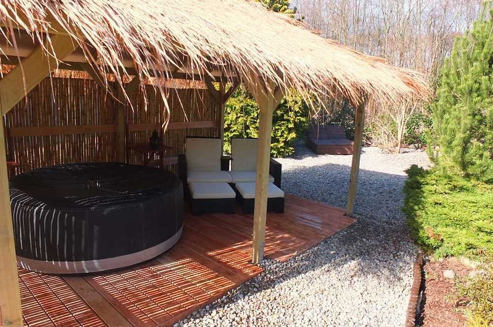 - überdachte Außenterrasse direkt am Wohnbereich + angrenzender großzügiger Terrassenbereich mit mehreren Sitzgelegenheiten + Außenkamin