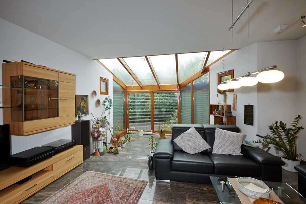 Die reizvolle und ausgefallene Architektur sowie der geräumige Schnitt verleihen dem Haus viel Freiraum. Über die Diele gelangen Sie zum repräsentativen Wohn- und Essbereich und der Küche. Über das große Wohnzimmer haben Sie direktem Zugang zum exklusiven Wintergarten.