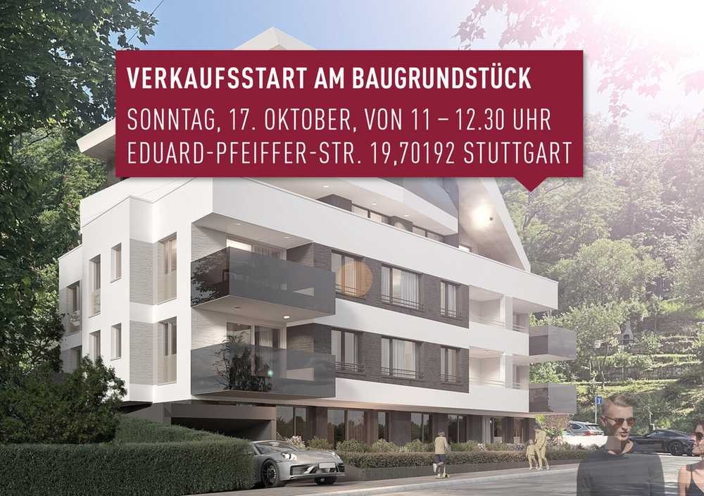 Wir laden Sie herzlich zum offiziellen Verkaufsstart mit offener Besichtigung am Sonntag, den 19. Oktober 2025, von 11 - 12.30 Uhr in die Eduard-Pfeiffer-Straße 19 in Stuttgart-Nord ein. Wir beraten Sie vor Ort zum Projekt, zu den verfügbaren Einheiten und der Ausstattung.