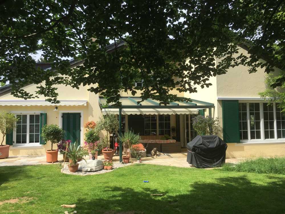 Das Haus liegt auf einem 810 m² großen, nach Süden ausgerichteten, liebevoll bepflanzten und nicht einsehbaren Grundstück mit alten Bäumen, viel Privatsphäre und Platz zum Entspannen im Grünen. Das gelbe Haus ist mit Wein berankt, Schmetterlingsflieder, eine Magnolie und die reich blühende Glyzinie sowie der dreifarbige Rhododendron sorgen für wunderbare, farbige Akzente. Ein sehr seltener, großer Mammutbaum sorgt im Sommer für faszinierende Lichtspiele im Wohnzimmer.