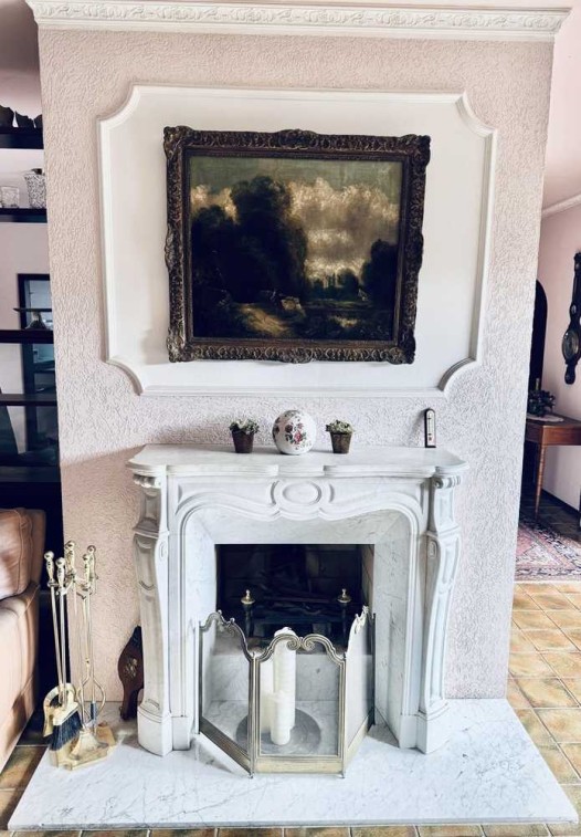 Alle Wohnräume sind mit Fußbodenheizung beheizt und mit italienischen Bodenfliesen versehen. Im großzügigen Wohnzimmer befindet sich ein offener Marmorkamin. Die bodentiefen Fenster mit Doppelverglasung auf gesamter Breite des Wohn-Essbereichs sind als Schiebetüren ausgelegt.