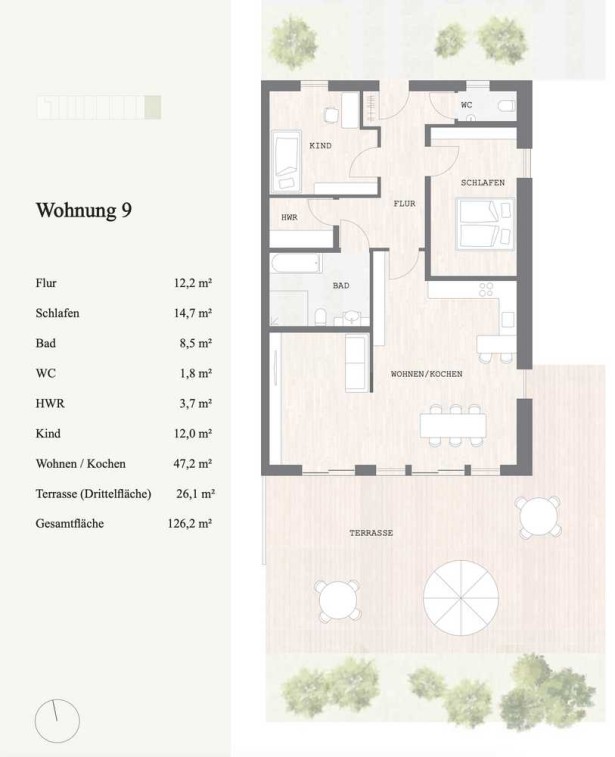 Die Grundrisse reichen von kompakten 2-Zimmer-Wohnungen mit ca. 69 m² bis hin zu großzügigen Familienwohnungen mit über 120 m² Wohnfläche.