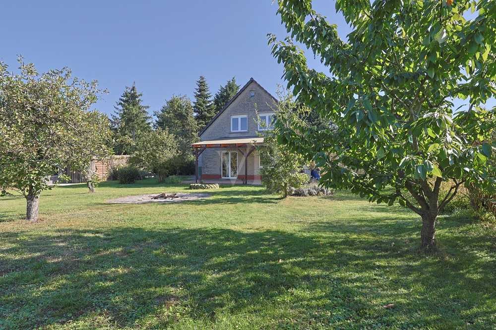 Der großzügige Wohn- und Essbereich im Erdgeschoss mit Zugang zur Terrasse bildet das Herzstück des Hauses. Große Fenster sorgen für viel Tageslicht und schaffen eine freundliche Wohnatmosphäre. Die Terrasse bietet einen schönen Blick in den weitläufigen Garten, der mit seiner Größe von über 1.300 m² zahlreiche Nutzungsmöglichkeiten für Freizeit, Gartenprojekte oder Spielflächen für Kinder eröffnet.