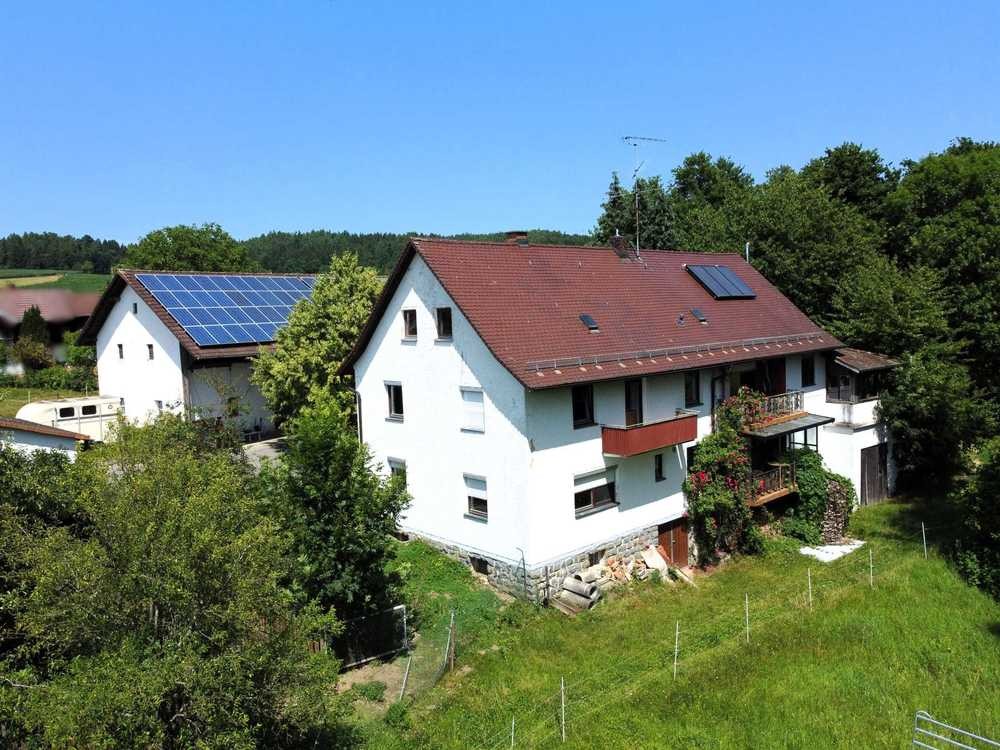 Das Anwesen bestehend aus Wohnhaus, Stall mit Scheune und Doppelgarage, wird von den Eigentümern bewohnt. Das ehemalige Turbinenhaus erinnert noch an die Zeit als Mühlengebäude. Das zweigeschossige, unterkellerte massive Wohnhaus, mit einer Wohnfläche von rund 250 m², bietet im Obergeschoss eine aktuell vermietete Einliegerwohnung. Das Dachgeschoss wird als klassischer Speicher genutzt. Bauweise und Erhaltungszustand sind einfach, es besteht Renovierungsbedarf. Dachstuhl und Eindeckung wurden erneuert und befinden sich in einem guten Zustand. Der Ausstattungsstandard entspricht etwa dem Renovierungsjahr 1975. Heizung und Warmwasserversorgung erfolgen über eine Öl-ZH und Solarthermie. Die Gebäude sind an die öffentliche Wasserver- und Abwasserentsorgung angeschlossen. Der Instandhaltungszustand der für 4 Kleinpferde genutzte Stall mit böhmischem Gewölbe, angebauter Scheune und Garage, ist gut. Auf dem Dach ist seit 2011 eine 24,15 kWp Photovoltaikanlage installiert. Der durchschnittliche jährliche Ertrag seit Inbetriebnahme liegt bei rd. 7.909 EUR. Die garantierte Einspeisevergütung endet im April 2031. Seitlich des Wohnhauses befindet sich eine Doppelgarage.