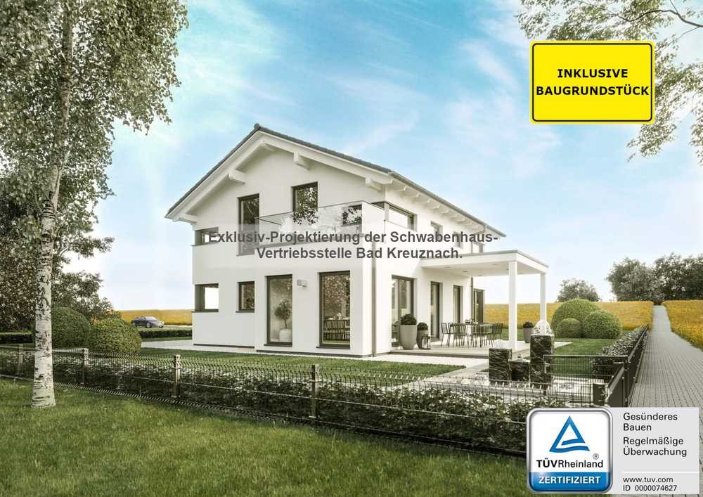 Hier können Sie als Bauherr die Hausbau-Firma SCHWABENHAUS mit der Errichtung eines energieeffizienten Hauses mit Festpreisgarantie und zeitnaher Fertigstellung beauftragen und Ihre Bauwünsche INDIVIDUELL auf einem wunderschönen Baugrundstück verwirklichen, welches Sie vorher direkt „von privat“ erwerben würden. -- Die hier dargestellten Pläne / Grundrisse stellen eine mögliche Bebauung des Grundstücks dar.