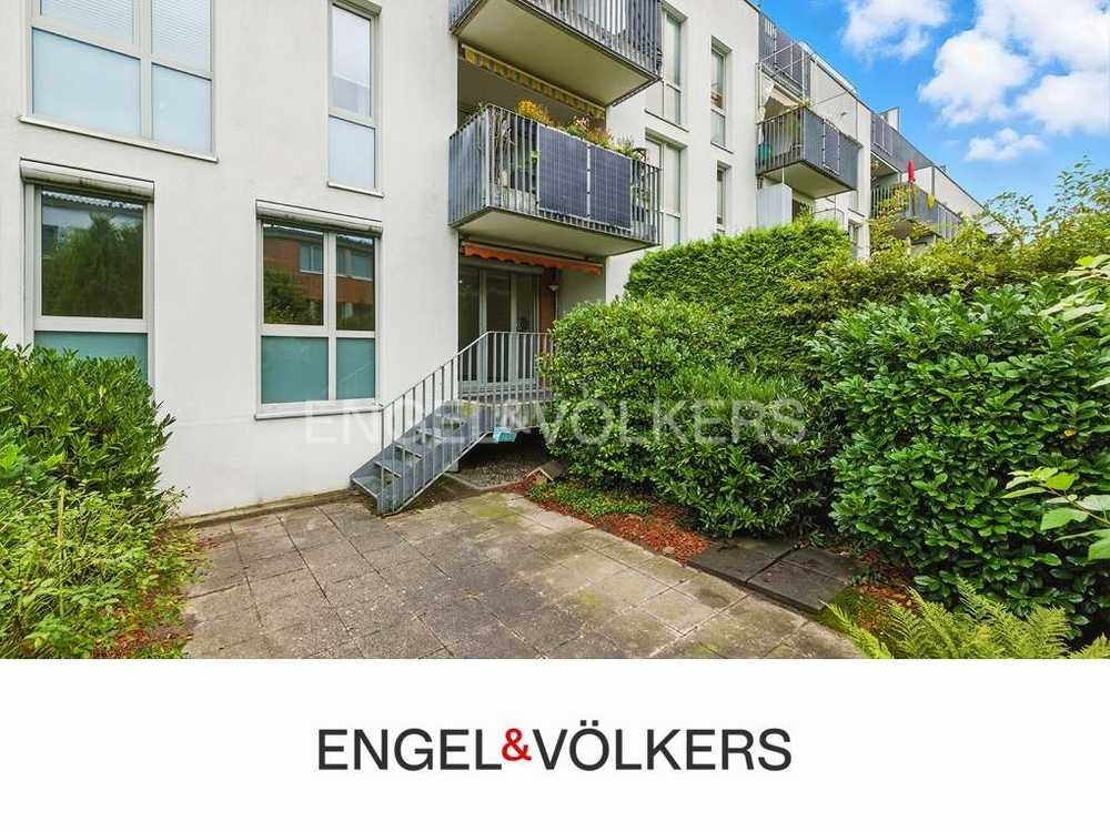 Das Highlight ist der Außenbereich dieser Wohnung. Sowohl vom Wohn- als auch vom Schlafzimmer aus, haben Sie Zugang zum Westbalkon. Auf diesem sitzen Sie, dank des darüberliegenden Balkons, auch bei Regen trocken und geschützt. Eine Treppe mit wenigen Stufen führt Sie hinab in den eigenen Gartenanteil, der pflegeleicht als große Terrasse angelegt ist. Hier können Sie entspannte Sonnenstunden genießen.