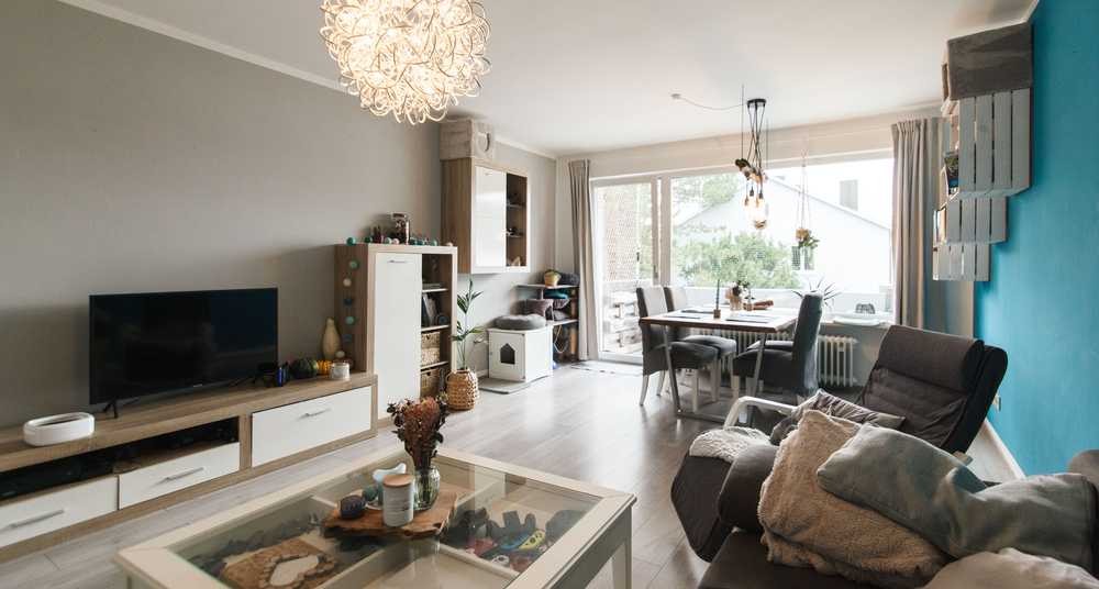 Herzstück der Wohnung ist das großzügige Wohnzimmer mit Südwest-Ausrichtung – hell, freundlich und mit direktem Zugang zum ca. 4,3 m² großen Sonnenbalkon. Hier lässt sich der Feierabend bei warmem Licht und entspannter Atmosphäre genießen.