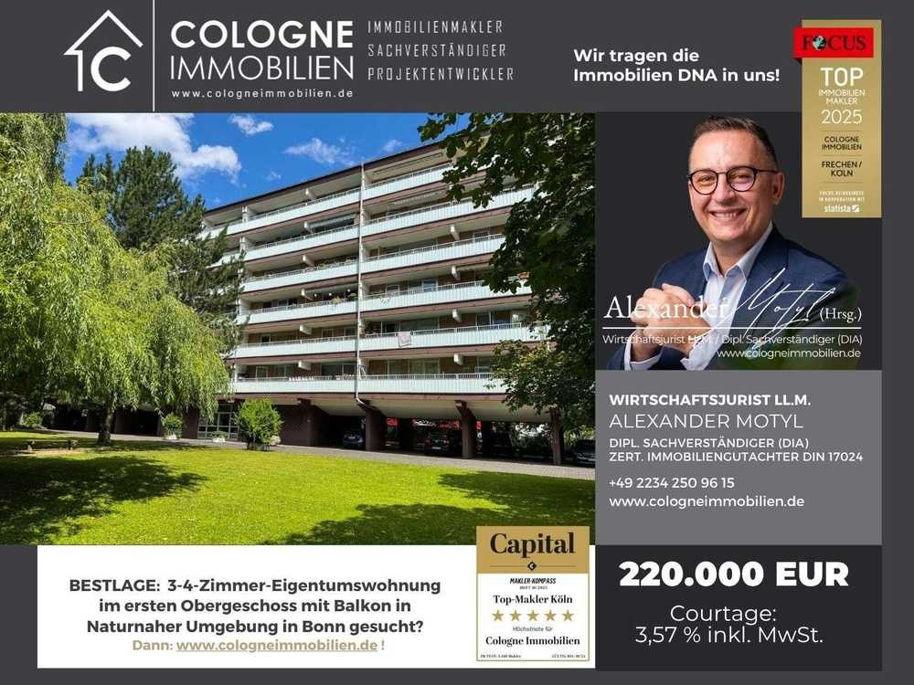 3-4 ZIMMER WOHNUNG IM 1.OG AUF 86 m² MIT STELLPLATZ, GROßEM BALKON MIT WEITBLICK IN BONN-AUERBERG