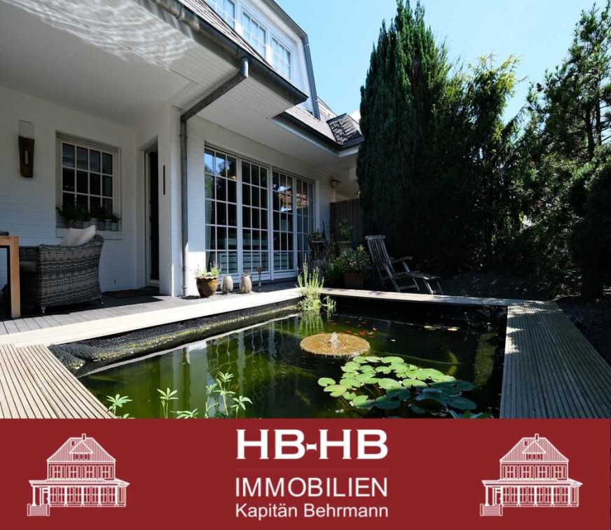 Ein besonderes Highlight ist der Garten, der sich im japanischen Stil mit einem Teich und kleiner Wasserfontäne präsentiert. Eine grüne Oase der Ruhe, die Ihnen zu jeder Jahreszeit einen Rückzugsort im Freien schenkt. Sei es bei einem Glas Wein oder einem gemeinsamen Grillabend mit Freunden. Für das perfekte Wohnerlebnis ist zudem ein festverbautes Bose-Soundsystem in fast allen Räumen integriert.