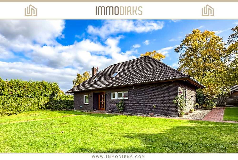 Bingum: Attraktiver Bungalow mit 2 Kaminen, Sonnenterrasse & großem Garten