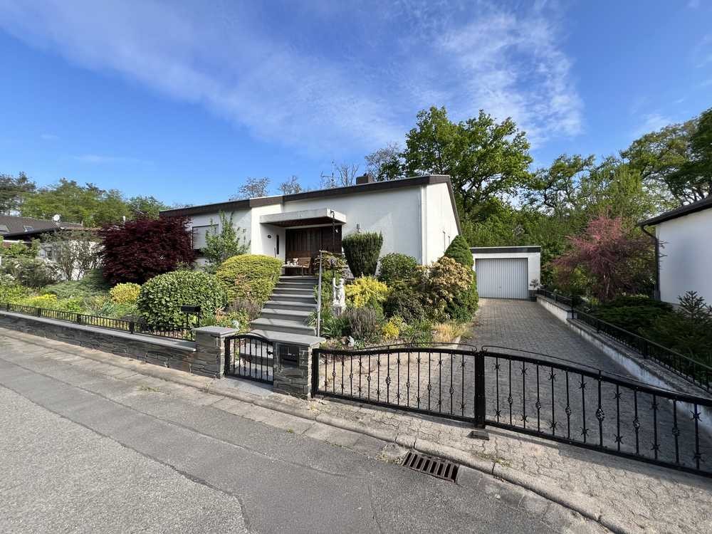Über die wenigen Treppenstufen aus Granitsteinplatten, erreicht man erhöht den Eingangsbereich des Hauses. Dieser Bereich, sowie der Vorgarten ist nach Süden ausgerichtet. Einen zweiten und durchaus praktischen Eingang zum Haus/Keller gibt es über die großzügige Hof- und Garageneinfahrtsseite. Das Grundstück ist komplett eingefriedet und eingezäunt. Dabei gibt es die Möglichkeit, direkt vom Garten, über eine abschließbare Gartentür in den angrenzenden Wald zum Spazierengehen, oder auch zum Joggen zu gehen.