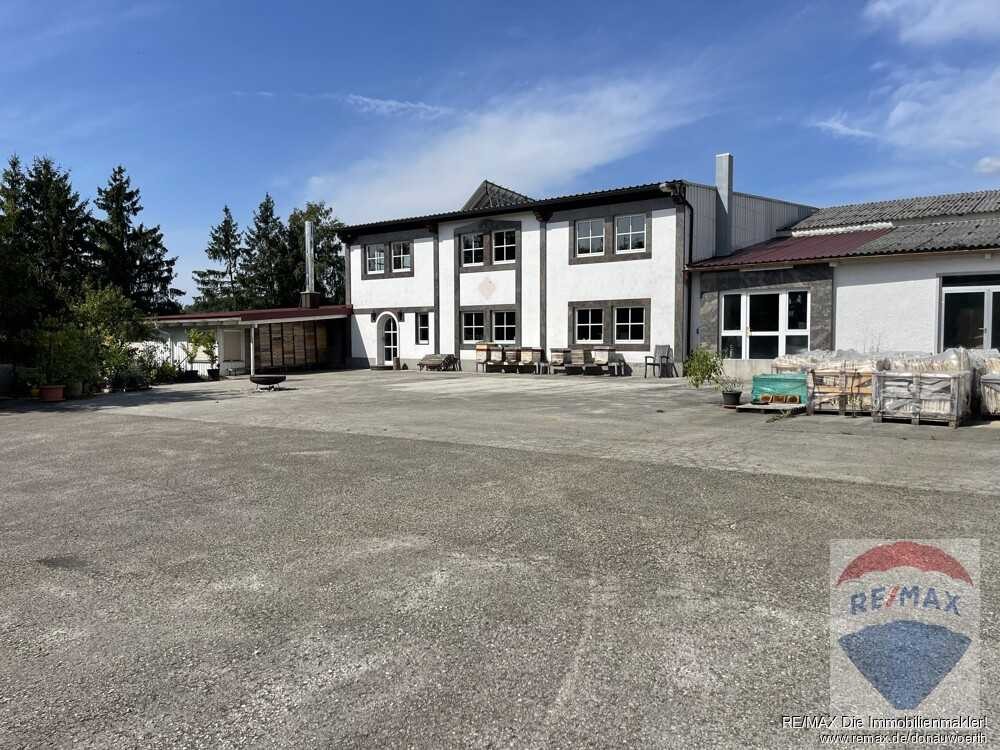 Der Gewerbebereich mit 485 m² umfasst ein Büro sowie eine Ausstellungs- und Hallenfläche, die vielfältige Nutzungsmöglichkeiten bietet.