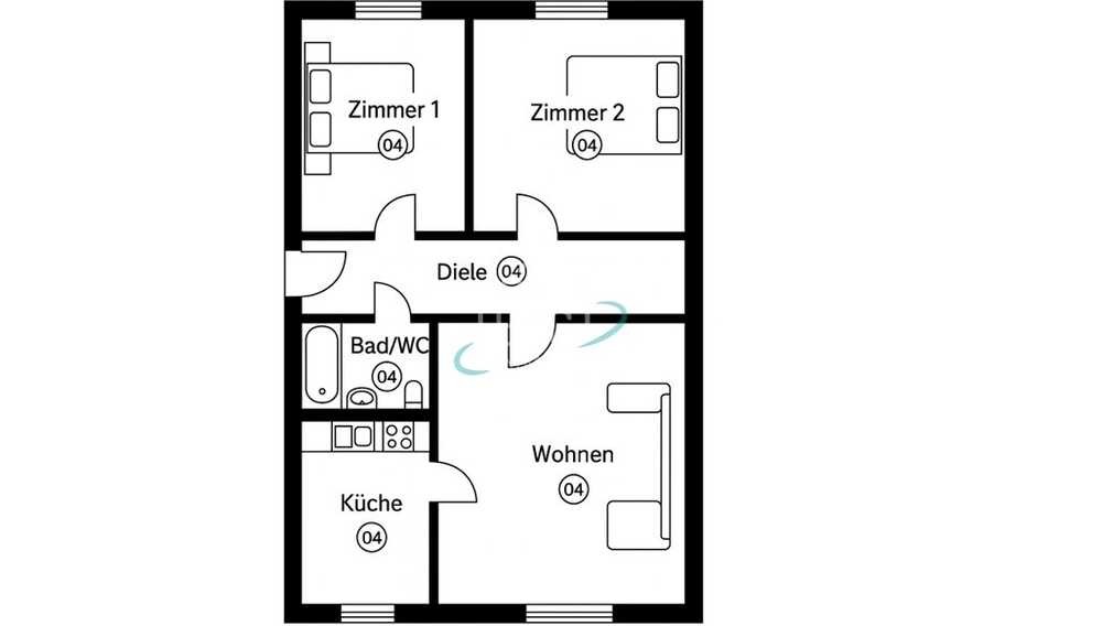Auf einer Wohnfläche von ca. 64,38 m² überzeugt die Wohnung durch ihren funktionalen Grundriss mit einem großzügigen Wohnbereich, zwei gut geschnittenen Schlafzimmern, einer separaten Küche sowie einem Badezimmer mit Badewanne.