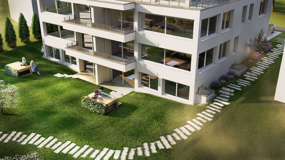 Die 3 Zimmerwohnung mit Privatgarten erreichen Sie über das Treppenhaus oder den Aufzug der Sie von der Tiefgarage unmittelbar zu Ihrer Wohnung bringt.