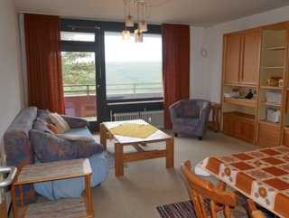 Das Wohnzimmer und die anderen Räume sind mit Teppichboden ausgestattet. Im Wohnzimmer kann ein Sofa, eine Anbauwand und ein kleiner Esstisch mit Stühlen seinen Platz finden. Von hier aus können Sie den großzügigen Balkon betreten. Genießen Sie hier Ihren Feierabend in Ruhe mit einer fantastischen Aussicht in die grüne Umgebung.