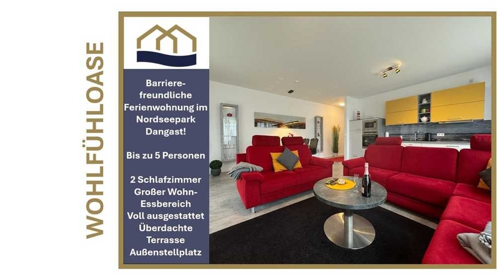 Zum Verkauf steht eine außergewöhnliche, barrierefreie Erdgeschosswohnung im Nordseepark Dangast, nur wenige Schritte vom malerischen Strand entfernt. Diese 2016 erbaute, modern gestaltete Immobilie bietet auf einer großzügigen Wohnfläche von ca. 89 m² eine ideale Raumaufteilung für komfortables Wohnen. Die Wohnung verfügt über drei gut geschnittene Zimmer: Zwei gemütliche Schlafzimmer, die für bis zu fünf Personen Platz bieten, und ein modernes Badezimmer mit einer begehbaren Dusche, die auch für Rollstuhlfahrer optimal geeignet ist.