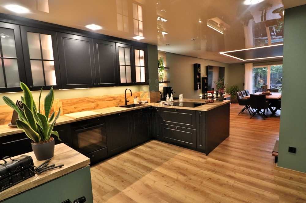 Der offene, geschmackvoll gestaltete Wohn- und Küchenbereich, der sich direkt beim Betreten des Hauses eröffnet, empfängt Sie mit einer einladenden und warmen Atmosphäre. Von der Eingangstür aus genießen Sie bereits den Blick bis in den mediterran angelegten Garten.