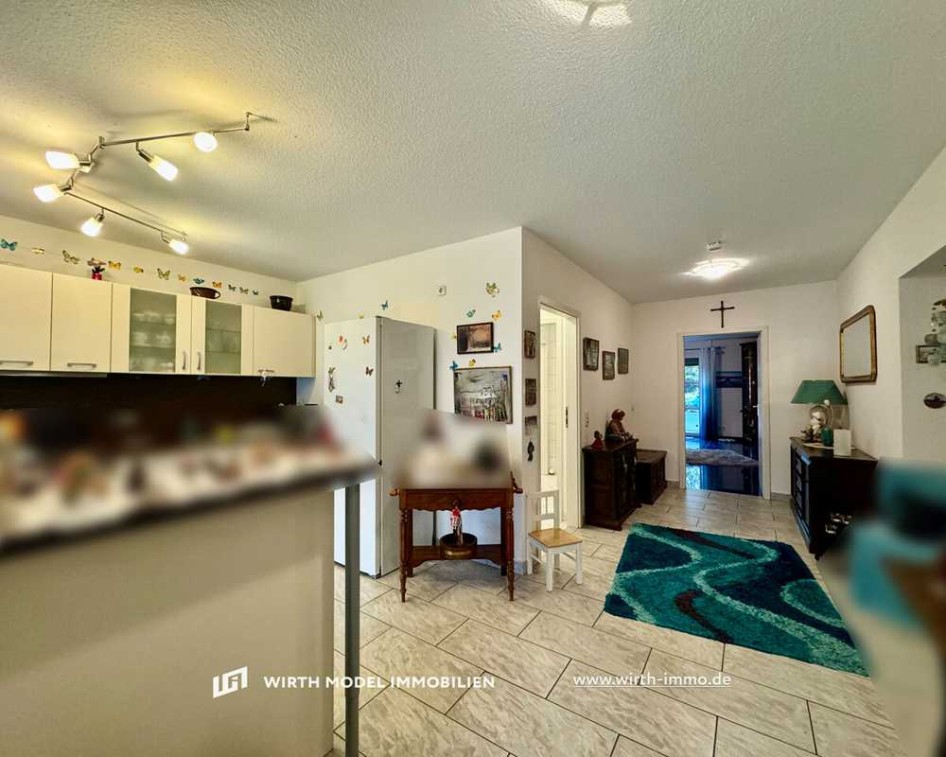 Zum Verkauf steht diese ansprechende Wohnung im Erdgeschoss einer gepflegten Wohnanlage. Betreten wird diese über einen großflächigen Eingangsbereich, welcher die offen gestaltete Küche samt Einbauküche und zugehörigen Elektrogroßgeräten beinhaltet.