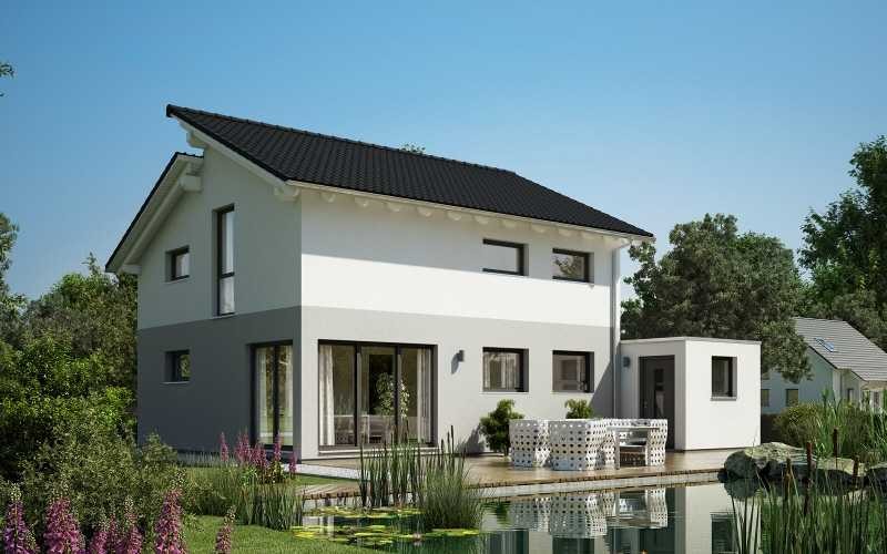 Nicht nur das zeitgemäße Pultdach, sondern auch die modern angeordneten Fenster machen aus diesem Entwurf ein echtes Highlight in jedem Baugebiet.